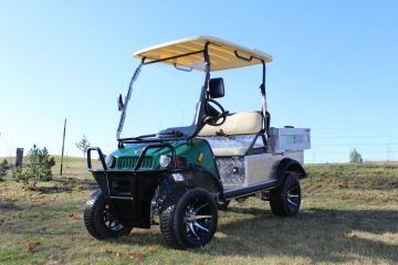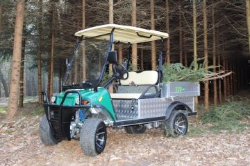 Evolution Truckster je dvoumístný elektromobil se zvýšeným podvozkem a praktickou korbou, navržený pro náročnou práci v terénu.